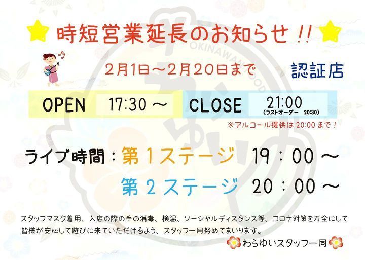 またまた時短営業という形になってしまいましたが、感染防止対策をしっかりして、少しでも皆様と楽しみたいと思いますので