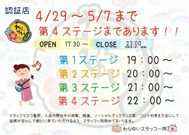 わらゆいは4月29日~5月7日まで22時にもライブステージを追加して4回ライブで営業しております‼️.